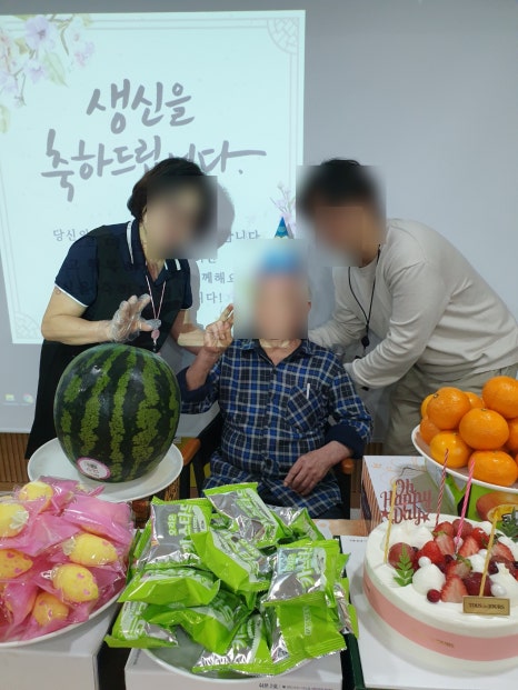 저희 행복 플러스 요양원에서는 한 달에 한 번씩 생신을 맞이 하시는