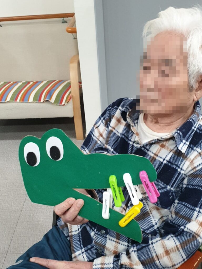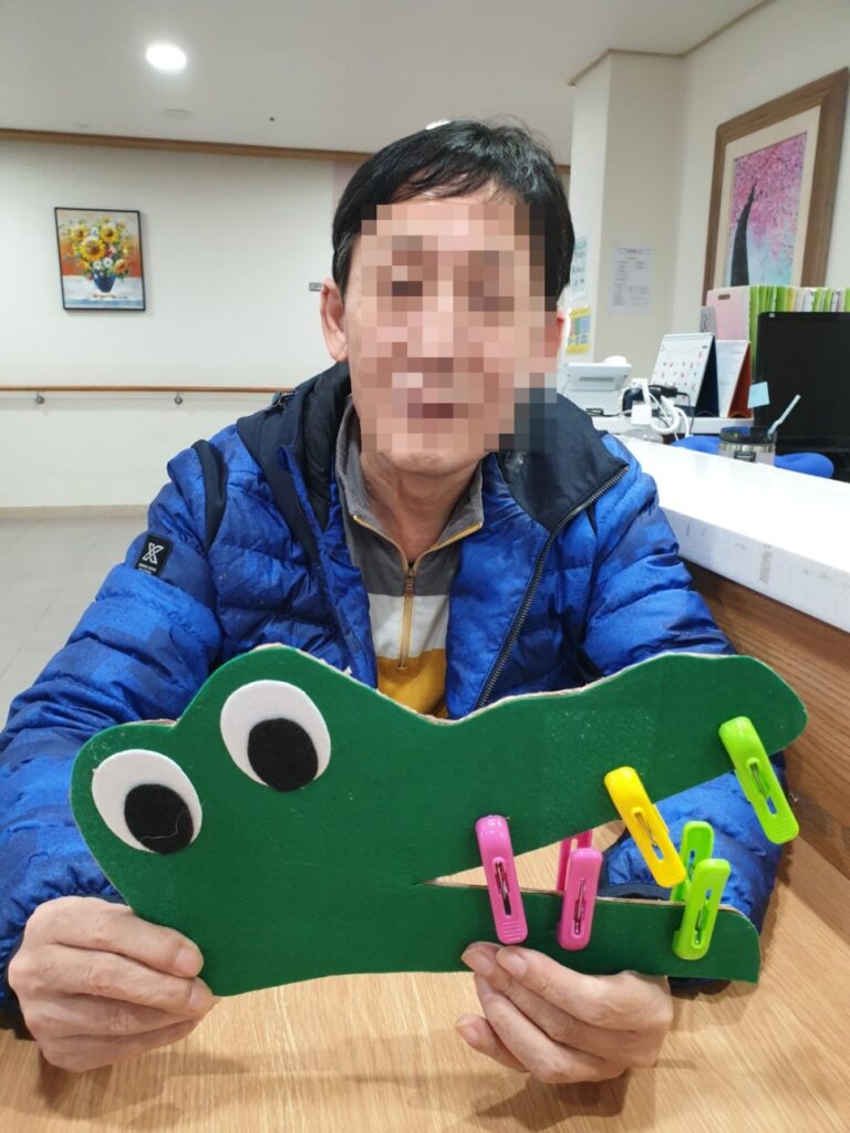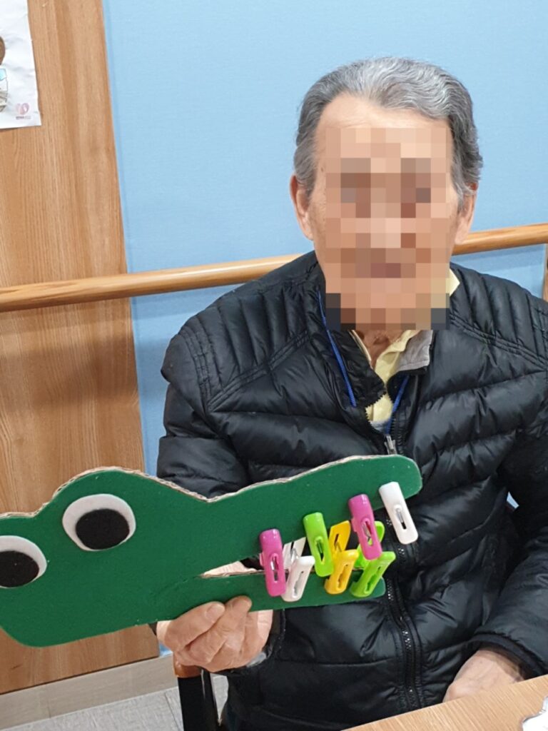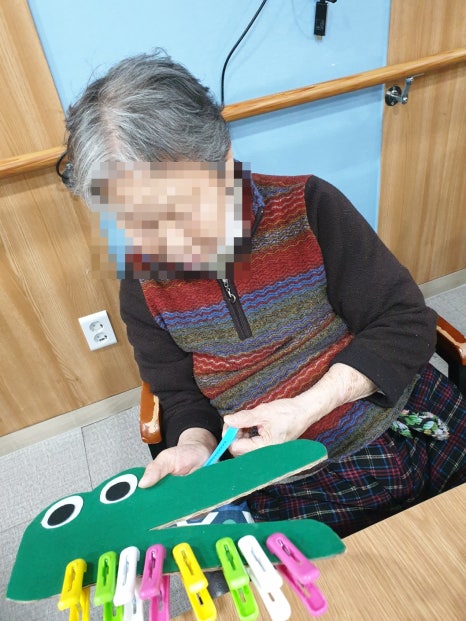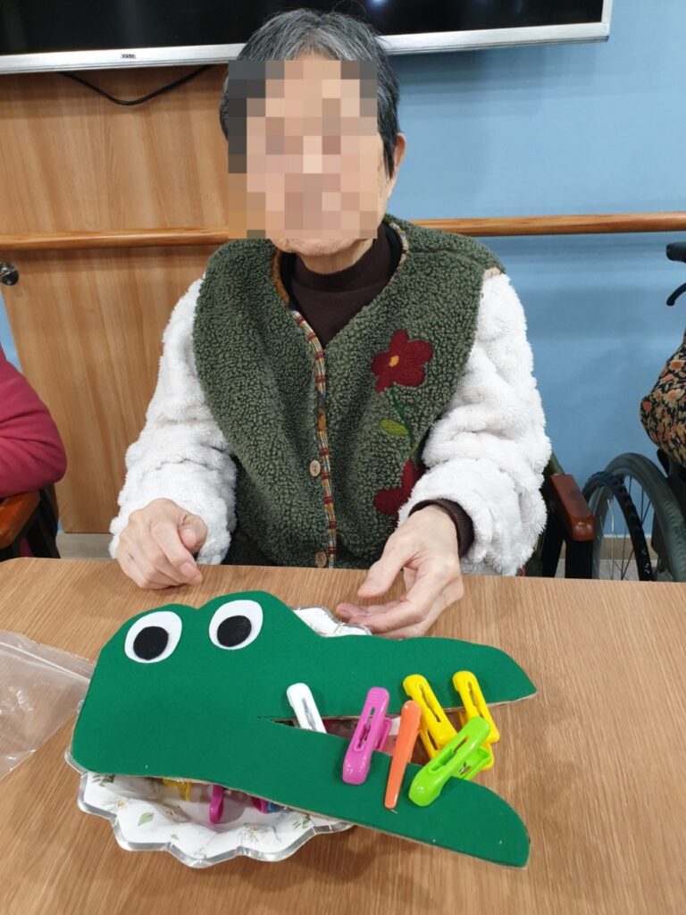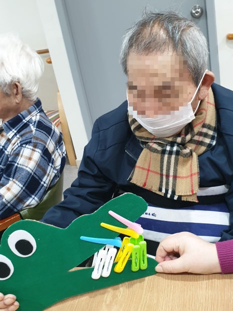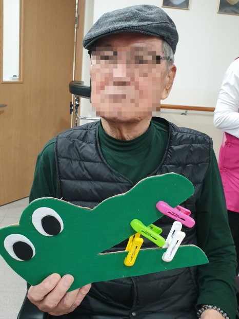 빨래집게를 통하여 어르신들 각자만의 멋진 악어이빨을 꾸며주셨네요!