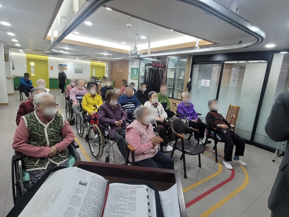 목사님께서 항상 좋은 말씀 많이 전달해 주시고 어르신들이 항상 은혜가 충만할 수 있도록 많이 기도해 주시는데요 항상 좋은 말씀 듣고 신나게 찬송가를 부르시는