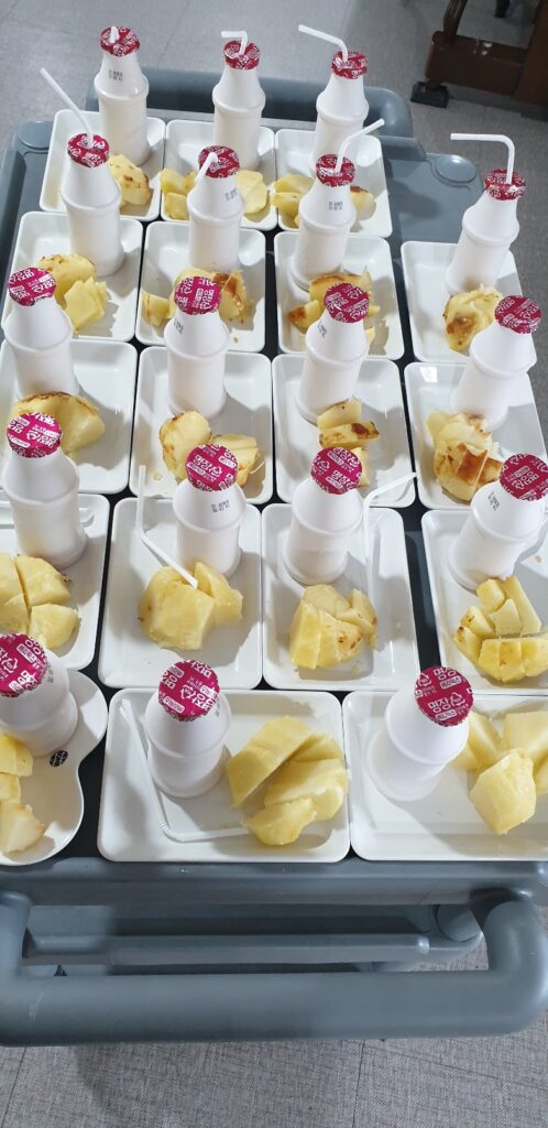 오늘의 간식은 저희 식당에서 찐 감자하고 요거트를 먹었습니다.