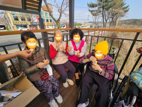 어르신들께서 한자리에 오손도손 함께 간식을 드시니까