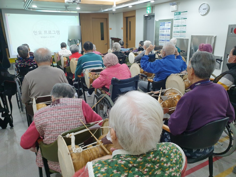 어르신들께서 좋아하시는 곡을 함께 부르고 율동을 하며 즐기는 프로그램이에요.